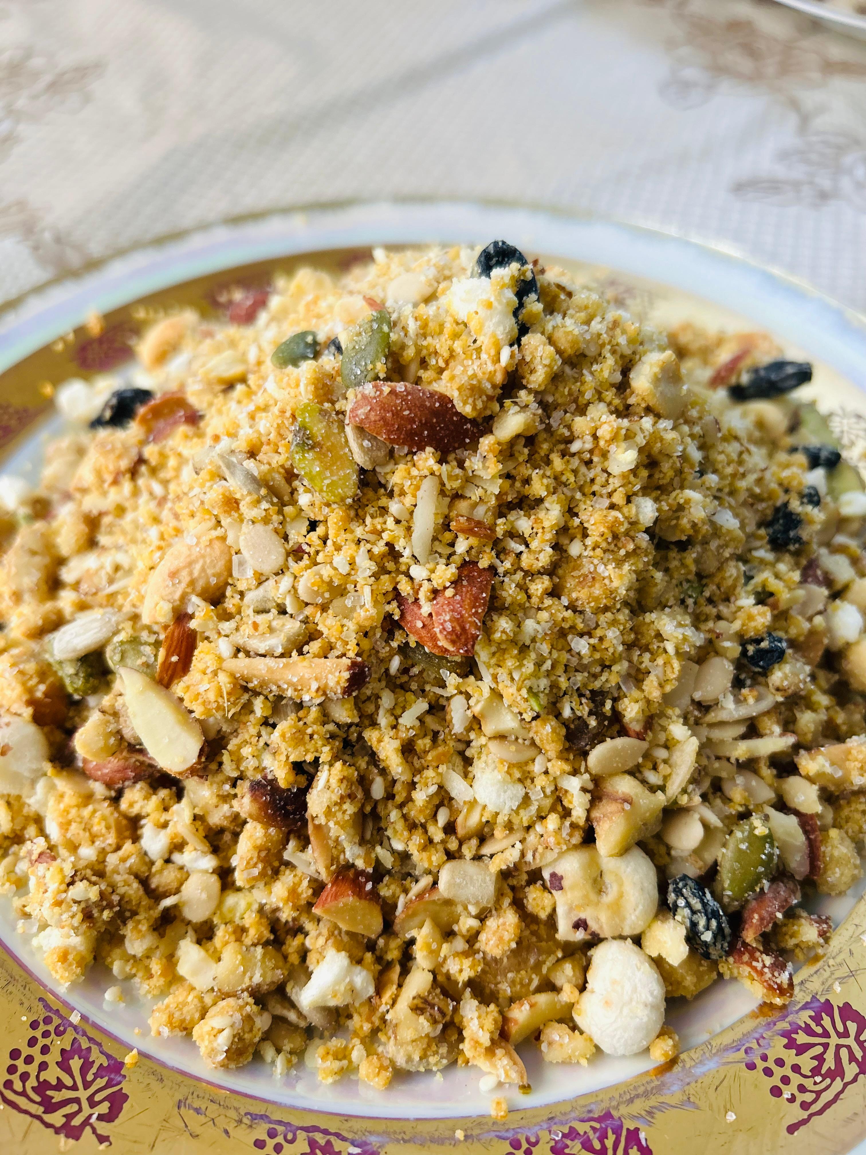 Desi ghee, Daal Chana, Semolina, Almonds,